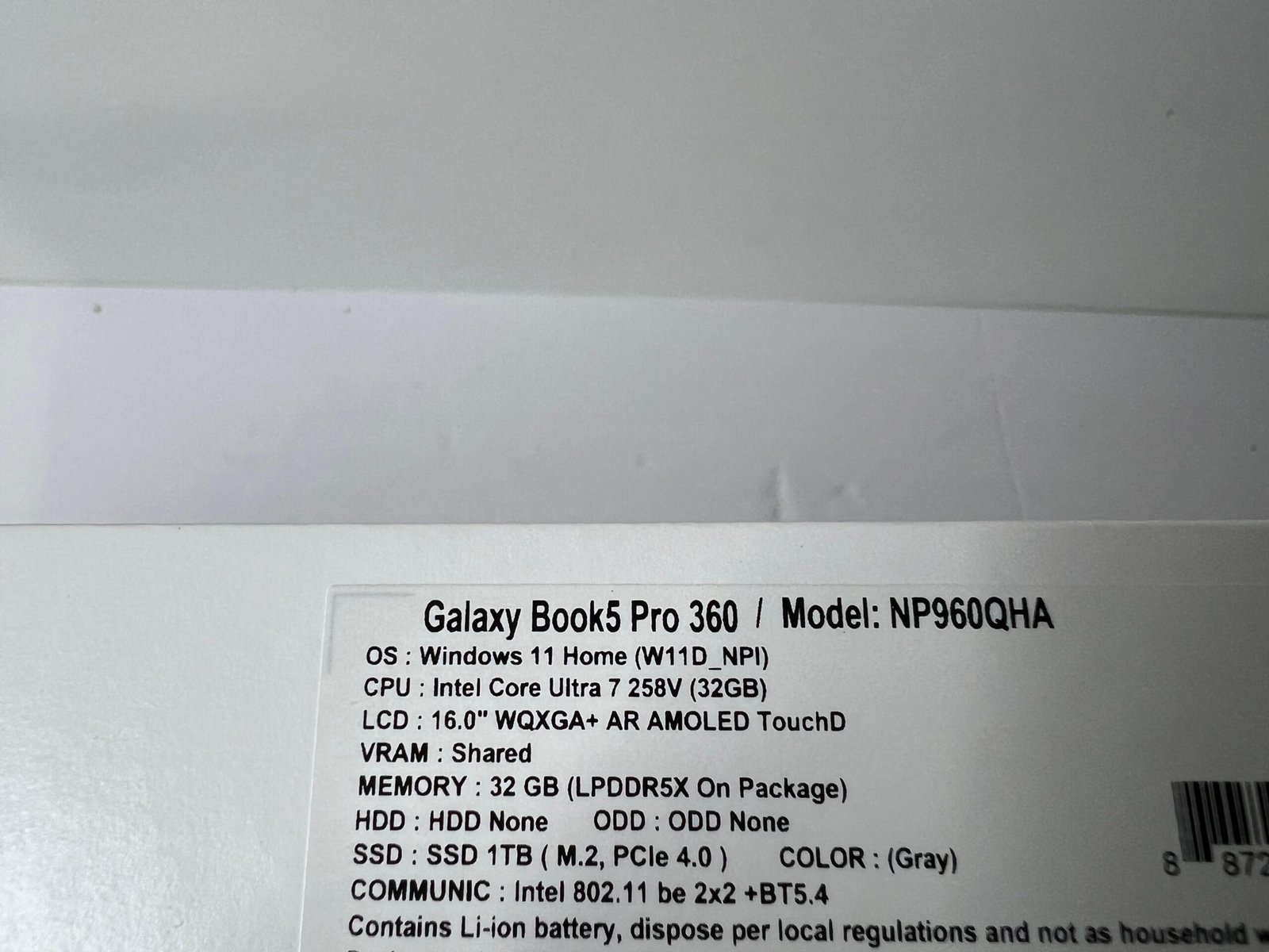 - CPU: Intel Core Ultra 7 258V